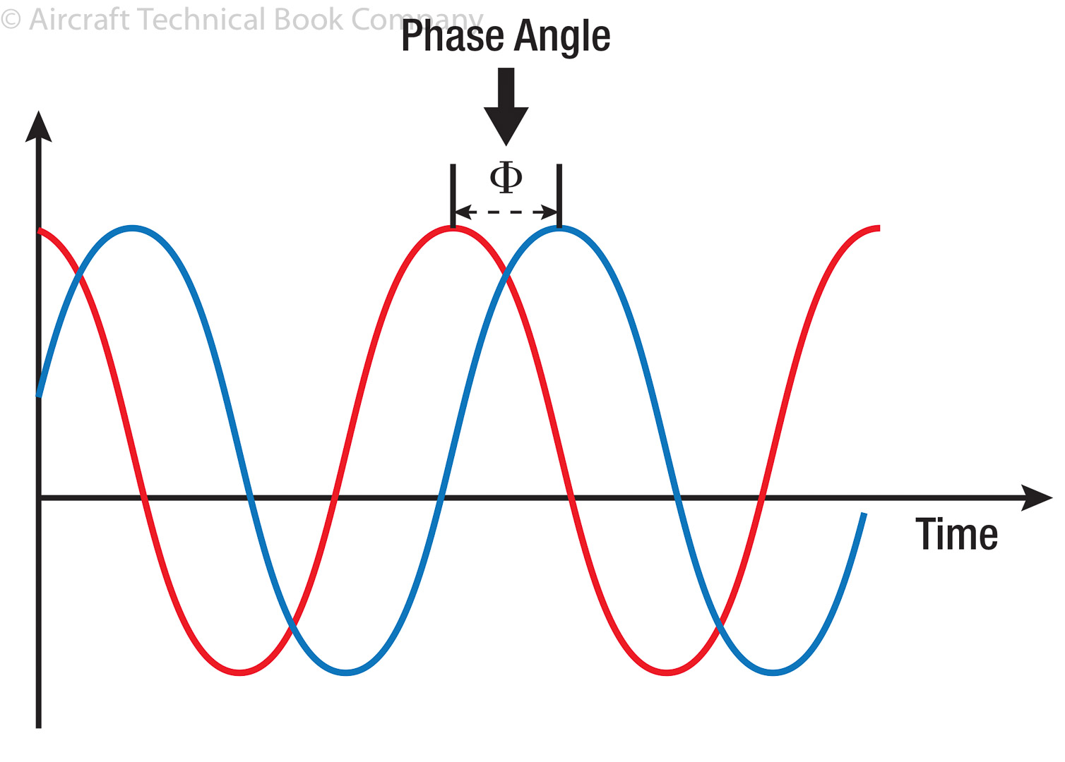 Figure 14-9. Phase angle is shown as the difference between leading and lagging waves.